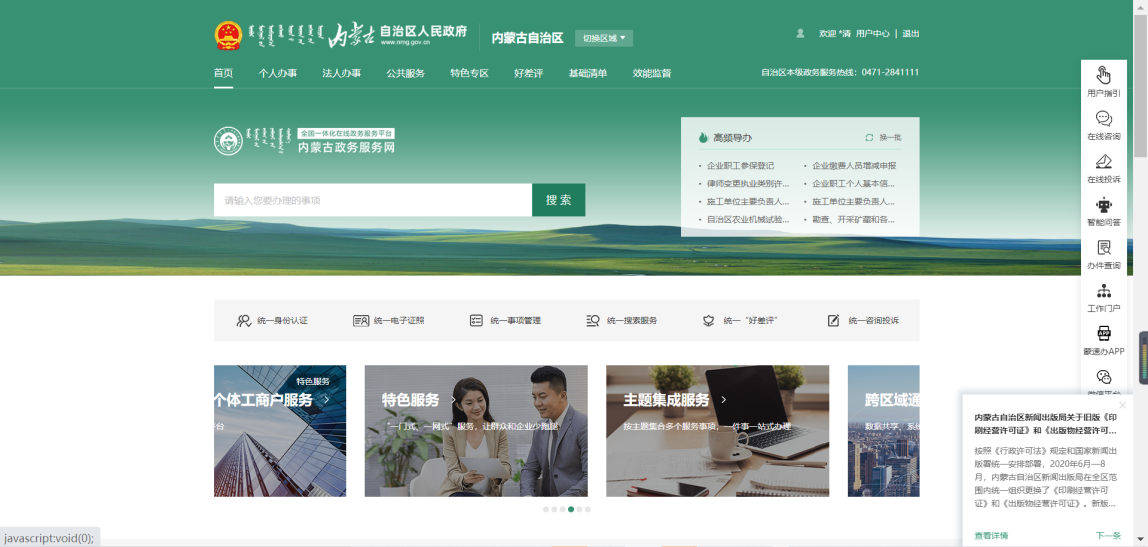 自治區(qū)住建領域電子證照系統(tǒng)是基于自治區(qū)政務服務網(wǎng)的功能使用的,需要對電子證照查詢及打印使用的用戶首先登陸政務服務網(wǎng);