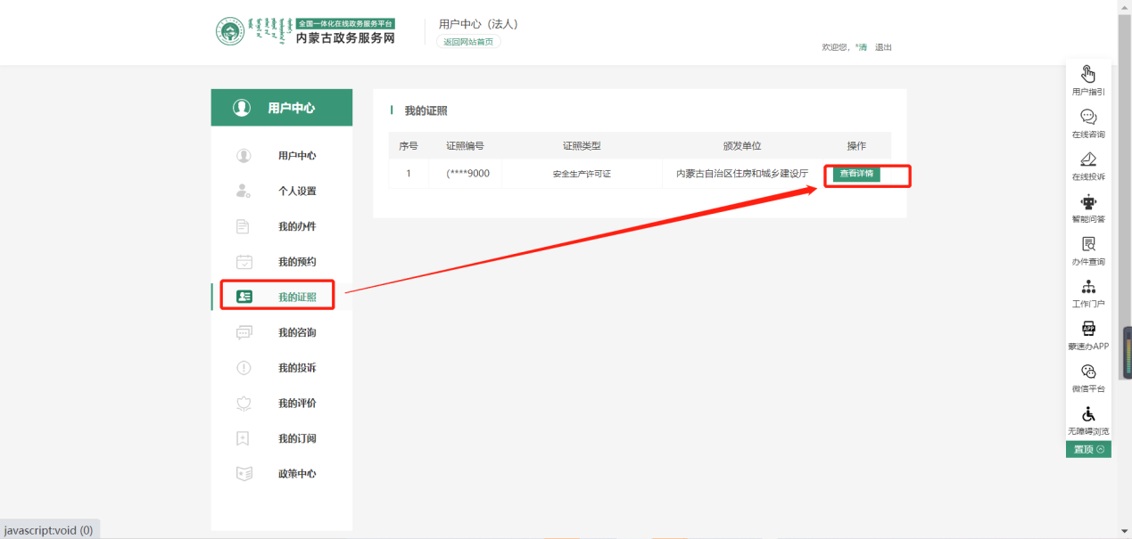 依次點擊我的證照、查看詳情;