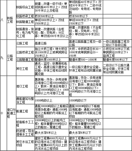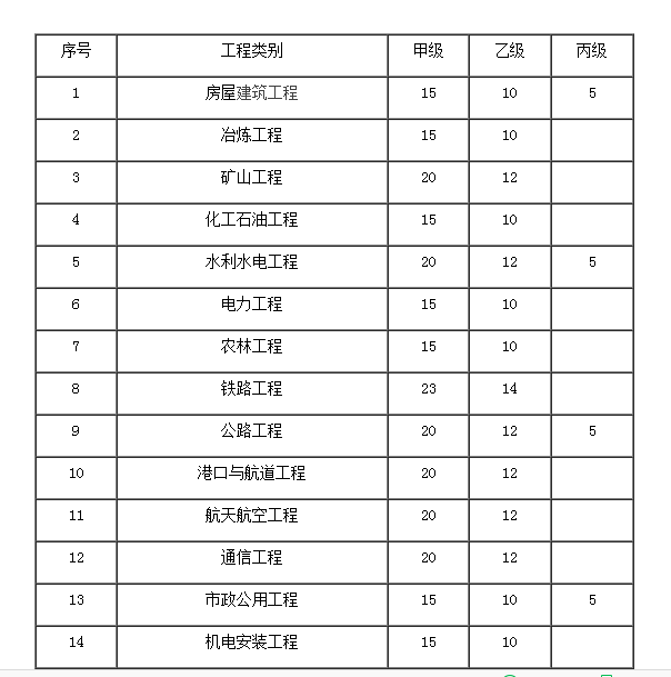 2.專業(yè)工程類別和等級(jí)表